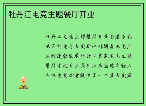 随着电竞产业的蓬勃发展,牡丹江首家电竞主题餐厅于近日正式开业,为当地年轻人和电竞爱好者提供了一个集美食、娱乐与社交于一体的全新场所。餐厅以电竞文化为核心,融合现代科技与餐饮服务,不仅设有高端电竞设备区,还提供特色主题餐饮和多样化娱乐活动。本文将详细介绍餐厅的设计理念、功能区划、特色菜品、开业活动及其对本地文化经济的积极影响,带您全面了解这一创新性商业项目。